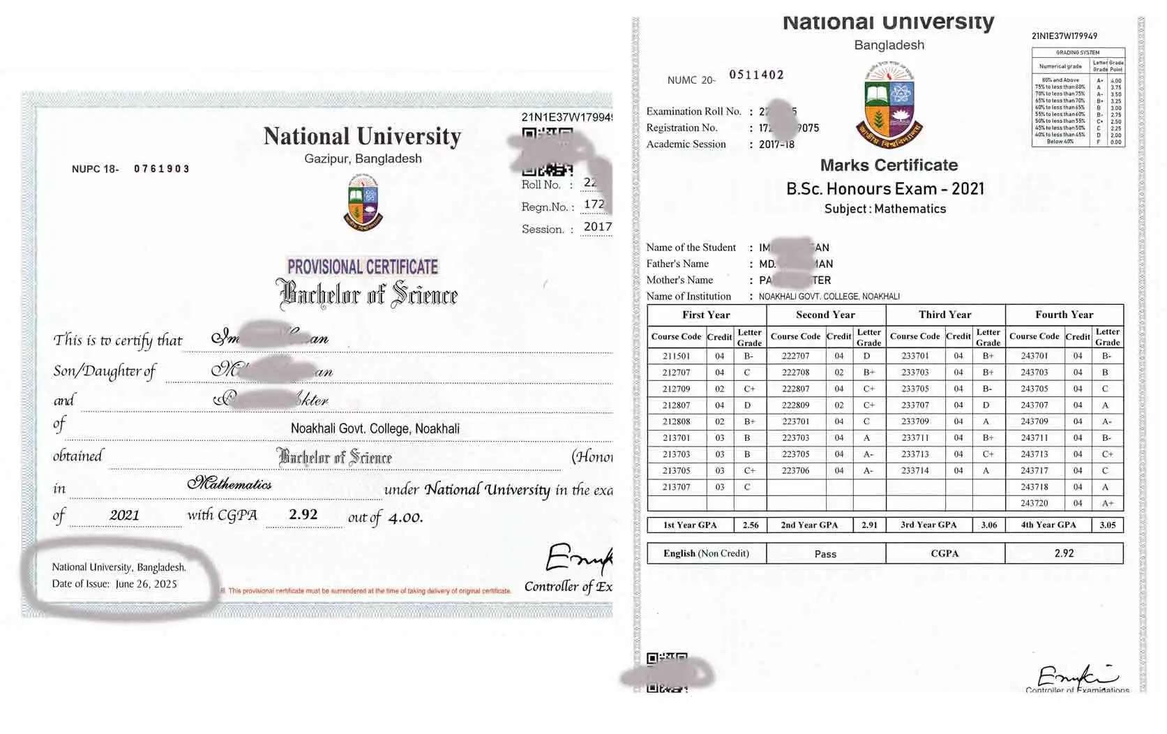 📄 সার্টিফিকেট ও মার্কশীট উত্তোলন
